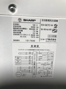 SHARP(シャープ)7.0㎏ 全自動洗濯機 ES-GE7C-W 2019年製