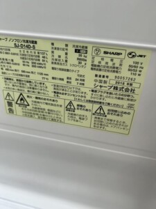 SHARP(シャープ)137L 2ドア冷蔵庫 SJ-D14D-S 2018年製