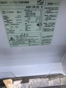 AQUA(アクア)126L 2ドア冷蔵庫 AQR-13K(S) 2021年製