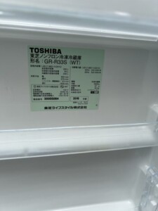 不要になった冷蔵庫をお申込み頂きました!TOSHIBA(東芝)330L 3ドア冷蔵庫 GR-R33S(WT) 2019年製