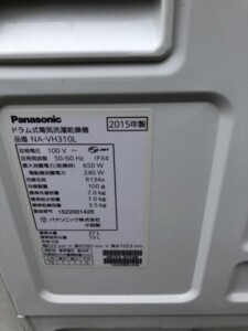 Panasonic(パナソニック)7.0キロ ドラム式洗濯乾燥機 NA-VH310L 2014年製