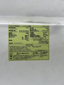 本日は広島県南区にアイリスオーヤマの2ドア冷蔵庫のご依頼があり