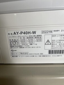 SHARP 4.0kw ルームエアコン AY-P40H-W 2022年製なんとSHARPの上位モデルエアコン2台!これは腕がなりますね〜
