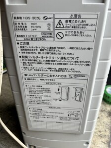 査定内容をご紹介します。FUJITSU(富士通)脱臭機 HDS-302G 2022年製