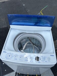 今回査定したのは、ハイアールの「JW-C45CK」という全自動洗濯機です。このモデルは、4.5kgの洗濯容量を持ち、コンパクトで省スペースな設計が特徴です。一人暮らしや少人数の家庭に最適で、限られたスペースにも設置しやすい点が魅力です。また、「風乾燥機能」が搭載されており、洗濯後の衣類を短時間で乾かすことができます。さらに、使いやすい操作パネルとシンプルなデザインが、毎日の洗濯を手軽にしてくれます。【商品の状態】