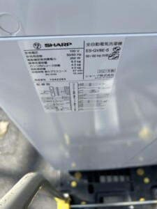 以下の製品をお引き受けしました!SHARP(シャープ)8.0キロ 全自動洗濯機 ES-GV8E-S 2021年製