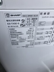 買取商品 5.5㎏電気洗濯乾燥機 メーカー SHARP(シャープ) 型番号 ES-TX5E-S 製造年数 2021年製 洗濯容量 5.5㎏ 乾燥容量 3.5㎏ サイズ 幅(ボディ幅)×高さ×奥行:565(520)×985×590