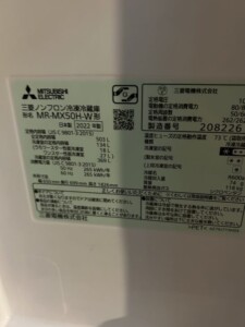 MITSUBISHI(三菱)503L 6ドア冷蔵庫 MR-MX50H-W 2022年製