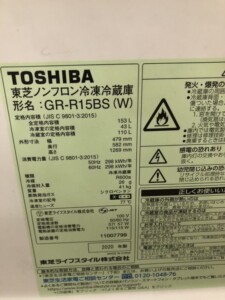 TOSHIBA(東芝)153L 2ドア冷蔵庫 GR-R15BS(W) 2020年製