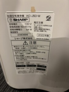 当日、追加でご希望された商品の一つがSHARP(シャープ)加湿空気清浄機 KC-J50-W 2022年製