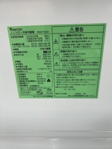 以下の製品をご紹介していきたいと思います!YAMADA(ヤマダ)156L 2ドア冷蔵庫 YRZ-F15G1 2020年製