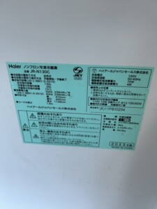 買取報告をご紹介します。Haier(ハイアール)130L 2ドア冷蔵庫 JR-N130C 2023年製