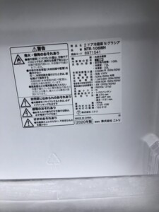 NITORI(ニトリ) 2ドア冷蔵庫 NTR-106WH 2020年製です。