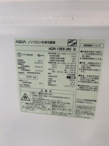 AQUA(アクア) 2ドア冷蔵庫 AQR-13E8(W) 2022年製 です。