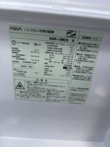 以下、当日の査定詳細をみなさんにご報告します。AQUA(アクア)126L 2ドア冷蔵庫 AQR-13M(S) 2022年製