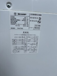 今回は以下の製品をお引き受けいたしました。SHARP(シャープ)7.0キロ 全自動洗濯機 ES-GE7E-W 2021年製
