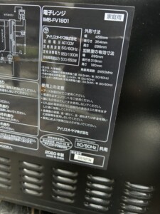当日の査定内容を皆さんにご紹介したいと思います。IRIS OHYAMA(アイリスオーヤマ)電子レンジ IMB-FV1801 2020年製