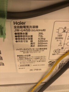 今回はHaierの洗濯機 JW-U45Bを買取させていただきました