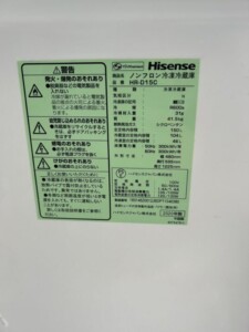 早速、査定詳細をみなさんにご紹介します!Hisense(ハイセンス)150L 2ドア冷蔵庫 HR-D15C 2020年製