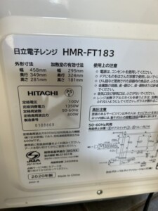 買取対象品となった以下の製品をご紹介します!HITACHI(日立)電子レンジ HMR-FT183 2020年製