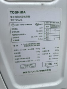 TOSHIBA(東芝)9.0㎏ ドラム洗濯機 TW-96A5L 2016年製