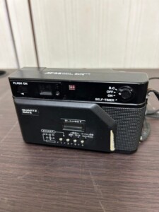 1983年に発売されたデート機構(日付け同時写し込み装置)付き機種になります。型式 35mmレンズシャッター式オートフォーカス全自動カメラ 画面サイズ 24×36mm AF方式 CCD(電荷結合素子)使用の三角測量方式、フォーカスロック可能 レンズ 40mm F1.9(5群5枚構成) シャッター 電磁駆動電子制御プログラム式、EV4(1/4秒、F1.9)~17(1/400秒、F18)、セルフタイマー内蔵(電子制御式) フィルムカウンター 蓋開放に連動して自動復帰する順算式(巻き戻しに連動する可逆式) 大きさと質量 122×73×55mm、440g(電池含む) 【製品の状態】