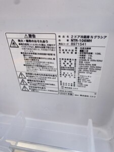 今回買取した「NTR-106WH」は、非常に良好な状態でした。使用感はほとんどなく、外観には目立った傷や汚れがありませんでした。さらに、付属品もすべて揃っており、取扱説明書も含まれていたため、Aランクの高評価で査定させていただきました。このような状態の冷蔵庫は、中古市場でも需要が高く、買取価格にも好影響を与えています