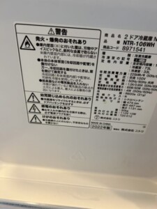 以下の製品の査定詳細をお伝えしたいとおもいます。NITORI(ニトリ)106L 2ドア冷蔵庫 NTR-106WH 2022年製