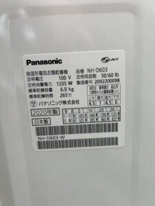 査定内容を皆さんにご紹介いたします!Panasonic(パナソニック)除湿形電気衣類乾燥機 NH-D603 2020年製