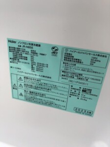 横浜市南区へお伺いいたしました。Haier (ハイアール) 2ドア冷蔵庫 JR-N85E