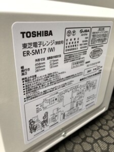 以下の製品をお引き受けいたしました。TOSHIBA(東芝)電子レンジ ER-SM17(W)2021年製