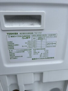 出張買取依頼でお伺いいたしましたので、ご紹介します!TOSHIBA(東芝) 11kg ドラム式洗濯乾燥機 TW-117A7 2019年製