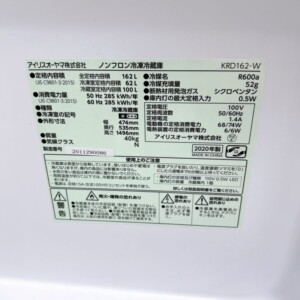 IRIS OHYAMA 冷蔵庫 KRD162-Wを買取いたしましたので、その特徴や査定の内容、現場の状況について詳しくご紹介いたします。