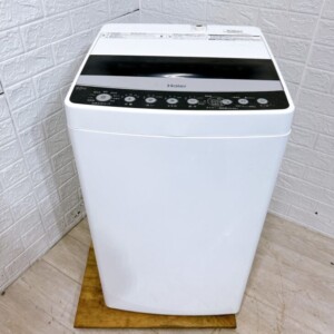 今回買取させていただいた「Haier 洗濯機 JW-C45D」は、コンパクトな設計ながらも高機能を兼ね備えた全自動洗濯機です。洗濯容量は4.5kgで、一人暮らしや少人数のご家庭に最適なサイズとなっています。特に、洗浄力を高める「ナノイー」機能や、汚れに応じて自動で洗濯時間を調整する「センサー洗浄」機能が特徴で、効率的かつ効果的に洗濯ができます。また、運転音も静かで、夜間の使用にも配慮されています。デザインはシンプルでありながらスタイリッシュで、どんなインテリアにもマッチすること間違いありません