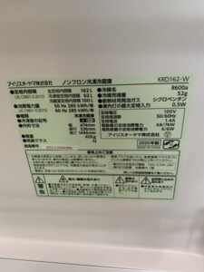 お問い合わせいただきました。アイリスオーヤマ 162L 2ドア冷蔵庫 KRD162-W 2020年製