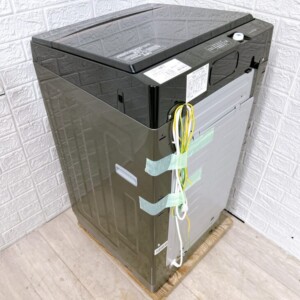 今回の洗濯機は、1~24時間の予約タイマー機能を備えた全自動洗濯機です。洗濯コースは標準、すすぎ1回、毛布、ドライ、つけおき、お急ぎ、槽洗浄、槽乾燥の8つが用意されており、さまざまな場面に対応できます。また、しっかりと脱水して部屋干しの臭いを防ぎ、乾燥時間を短縮する「部屋干しモード」を搭載。天面には掃除しやすいフラットなガラス扉が採用されており、利便性が高いデザインが特徴です。さらに、「チャイルドロックモード」で上ぶたの安全性が確保され、黒カビの発生を抑えるステンレス槽が衛生面でも優れた構造となっています。【商品の状態】