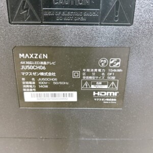 maxzenの液晶テレビ「JU50CH06」を出張買取させていただきました。査定の流れと共に、商品の状態や買取現場の状況について詳しくご紹介いたします。