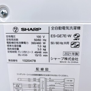 シャープ 7.0kg 全自動電気洗濯機 ES-GE7E-W 2021年製
