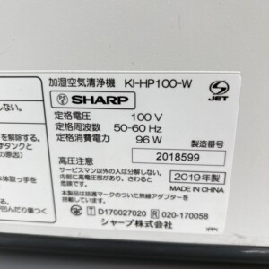 買取が可能か出張査定希望とのことでした。SHARP(シャープ) 加湿空気清浄機 KI-HP100-W 2019年製です。