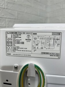 高年式製品の買取報告となります!NITORI(ニトリ)6.0キロ 全自動洗濯機 NTR60L1WH 2024年製
