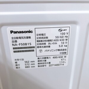 ご紹介します。Panasonic (パナソニック) 5kg 全自動電気洗濯機 NA-F50B15 2022年製