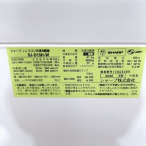 以下、査定詳細をご報告いたします。SHARP(シャープ)152L 2ドア冷蔵庫 SJ-D15H-W 2022年製