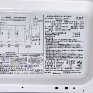 動作に問題がない点は、中古電子レンジとしての重要な評価ポイントです。外観にはやや使用感があり、特に取っ手部分にやや黄ばみのような変色が見られました。