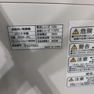 本日は、東京都立川市にてお引き受けした商品をご紹介します。エスケイジャパン 食器洗い乾燥機 SDW-J5L 2019年製