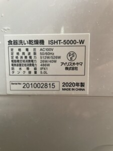 IRIS OHYAMA(アイリスオーヤマ) 食器洗い乾燥機 ISHT-5000 2020年製