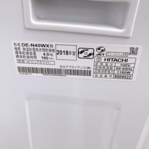 そこで私たち出張買取サービスをご利用いただき、この乾燥機を拝見しました。HITACHI(日立)4.0キロ 電気衣類乾燥機 DE-N40WX 2018年製