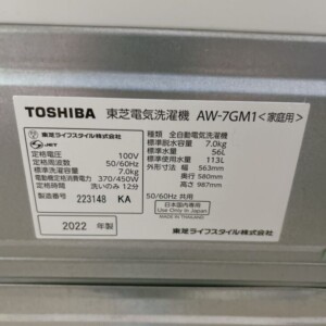 東芝 全自動電気洗濯機 AW-7GM1(2022年製)