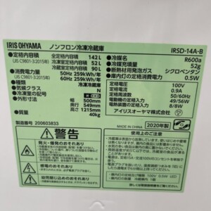 当社の出張買取サービスをご利用いただき誠にありがとうございます!IRIS OHYAMA(アイリスオーヤマ)142L 2ドア冷蔵庫 IRSD-14A-B 2020年製