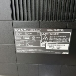引っ越しに伴う一括売却のご相談の一環でお取引となりました。SONY(ソニー)43型4K液晶テレビ KJ-43X85J 2022年製