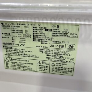 U-ING(ユーイング) 110L 2ドア冷蔵庫 UR-F110H 2017年製
